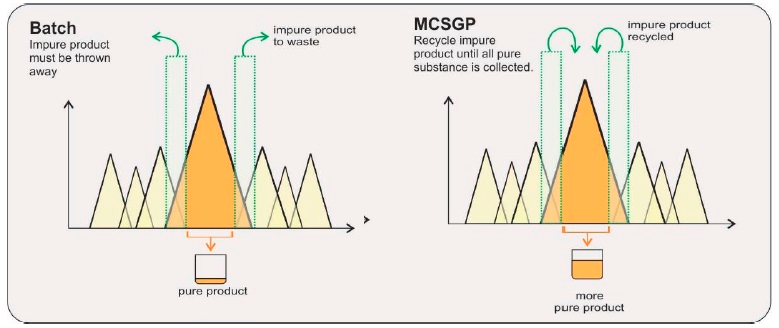 MCSGPMulticolumn Countercurrent Solvent Gradient Purification)用于精純環節,無需通過耗時的實驗設計(DoE)確定工藝條件,可有效克服典型SMB(模擬移動床)僅適用于二元分離、無法實現線性梯度的缺點。