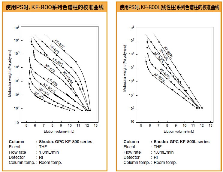 GPC KF-800系列色譜柱的校準曲線