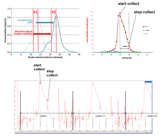 ? 通過(guò)MCSGP的子模塊M-Control,可有效克服由于溫度、柱效等因素造成的出峰時(shí)間遷移,實(shí)現(xiàn)智能收集,保證各cycle的工藝可控性和可重復(fù)性。
